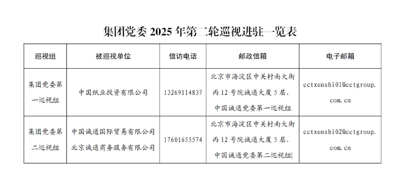 ??按照集團黨委和巡視工作領導小組部署安排,10月10日至13日,集團黨委2個巡視組分別進駐中國紙業投資有限公司、中國誠通國際貿易有限公司、北京誠通商務服務有限公司開展巡視,被巡視企業分別召開巡視進駐會,其中誠通國貿以視頻會議方式召開。集團黨委各巡視組對學習貫徹習近平總書記關于巡視工作重要論述,扎實開展本輪巡視提出要求。