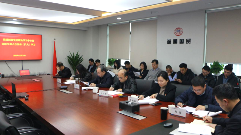 ??12月31日,誠通國貿黨委召開理論學習中心組(擴大)學習,學習貫徹習近平總書記對中央企業工作作出重要指示精神和黨的二十屆四中全會、中央政治局會議、中央經濟工作會議、中央企業負責人會議精神,圍繞“十五五”規劃編制和2026年重點工作安排進行務虛研討。公司黨委書記、董事長何建祥主持會議,公司領導班子成員參加會議。集團列席旁聽組視頻列席指導。