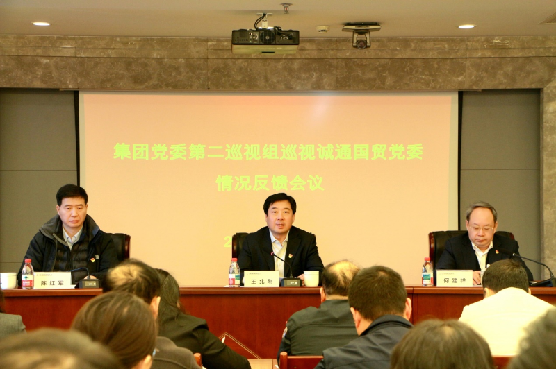??根據集團黨委統一部署,2月9日,集團黨委第二巡視組向中國誠通國際貿易有限公司(以下簡稱誠通國貿)黨委反饋巡視情況。集團黨委委員、紀委書記王兆剛出席會議并講話,集團黨委第二巡視組組長陳紅軍反饋巡視情況,誠通國貿黨委書記、董事長何建祥主持會議并就做好巡視整改工作作表態發言。